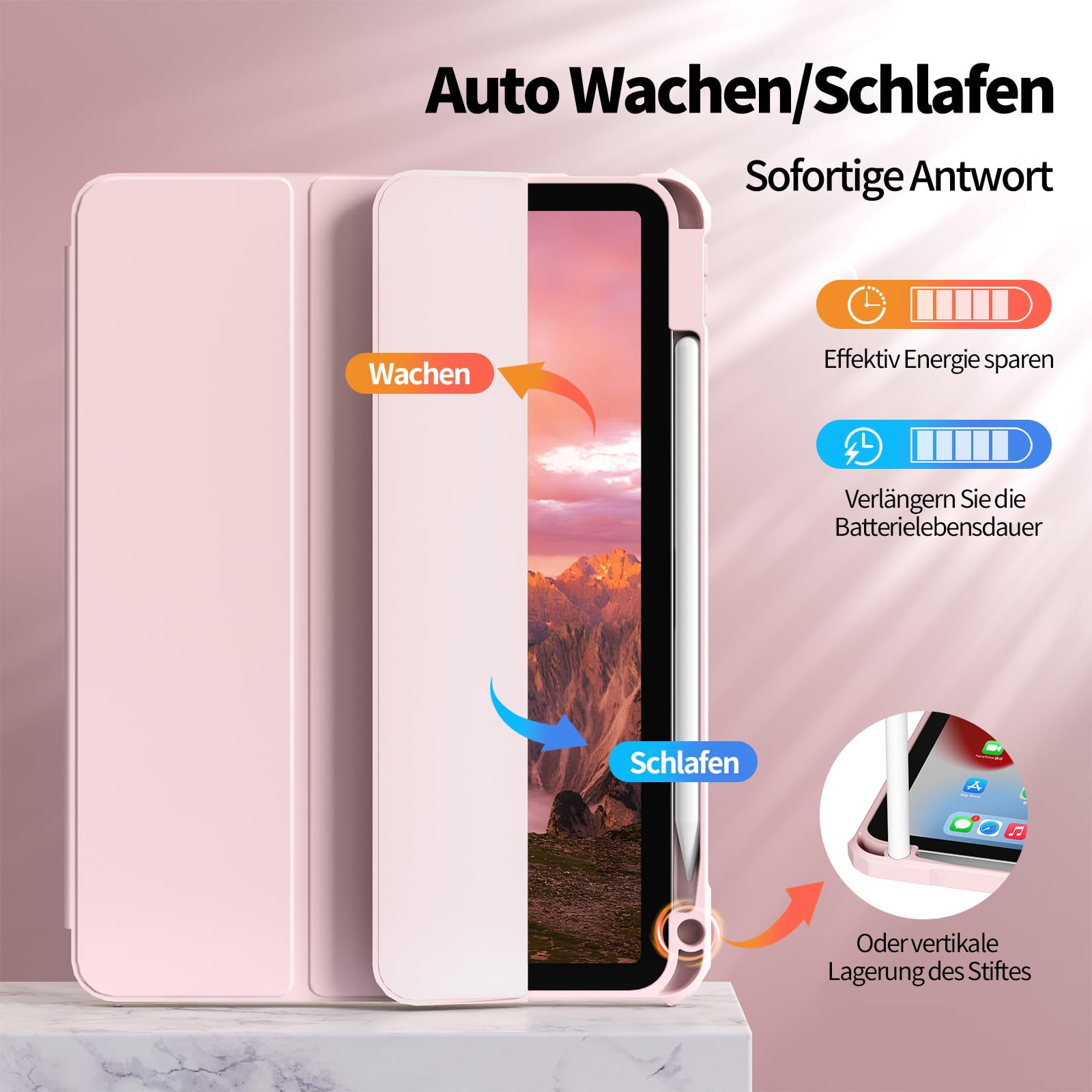 Perfekter Schutz für dein iPad! Diese stylische Hülle passt genau auf das iPad der 11. Generation 2025 (11 Zoll, Modelle A3355/A3356) und die 10. Generation 2022 (10,9 Zoll, Modelle A2757/A2696/A2777). Achtung: Nicht für andere iPad-Modelle geeignet! Die transparente Hart-PC-Rückseite schützt vor Kratzern und Stößen, während die weiche Mikrofaser-Innenseite dein Display schont. Der integrierte Magnet sorgt für automatisches Aufwachen und Schlafen - super praktisch und energiesparend. Die Hülle lässt sich zu einem stabilen Standfuß mit zwei verschiedenen Betrachtungswinkeln falten, perfekt zum Tippen oder Videos schauen. Präzise Aussparungen geben freien Zugang zu allen Anschlüssen, Kameras und Tasten. Im navy blauen Design mit PU-Leder-Optik sieht sie nicht nur gut aus, sondern bietet auch Rundum-Schutz für dein wertvolles Tablet. Ein Must-have für alle iPad-Besitzer!