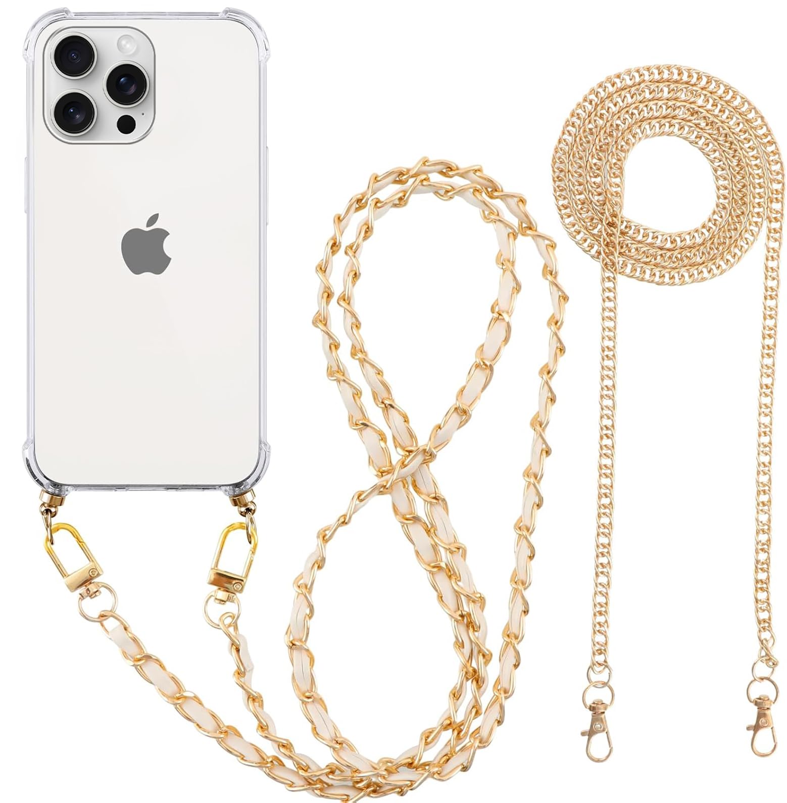 IPhone 16 Pro Hülle Mit Kette Rosa - Glitzer Schutzhülle Mit Verstellbarer Kordel