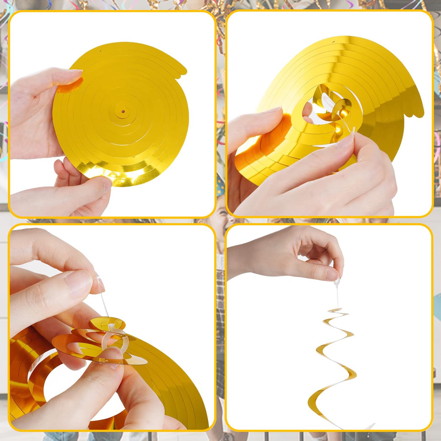 11th Birthday Dekoration - 10 Hängende Wirbel Schwarz Gold, Vormontiert