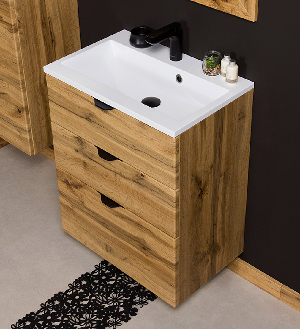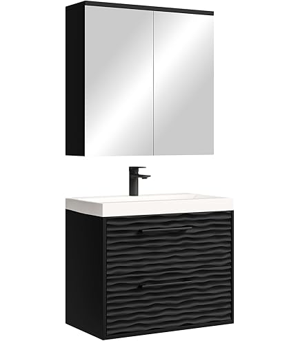 VCM Badinos Waschtisch Set 3-tlg. - Hängender Waschplatz Mit Spiegelschrank 60cm Breite