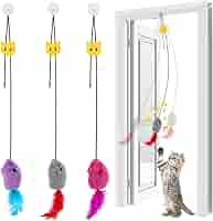 Deine Katze langweilt sich? Dieses hängende Spielzeug wird sie stundenlang beschäftigen - auch wenn du nicht da bist!\n\nIm 2er-Pack mit realistischen Mäusen die quietschen (ohne Batterien!). Mit Federschwanz der die Jagdinstinkte weckt. Einfach an Türrahmen oder Tür befestigen und zuschauen wie deine Katze verrückt spielt.\n\nDas elastische Seil sorgt für unvorhersehbare Bewegungen - genau das lieben Katzen! Perfekt für die Selbstbeschäftigung wenn du mal weg bist.\n\nTrainiert Jagdfähigkeiten und hält fit. Deine Katze wird begeistert sein von diesem interaktiven Spielzeug.\n\nRobust und langlebig - doppelte Freude für deine Fellnase! Endlich ein Spielzeug das wirklich ankommt und deine Katze aktiv hält.
