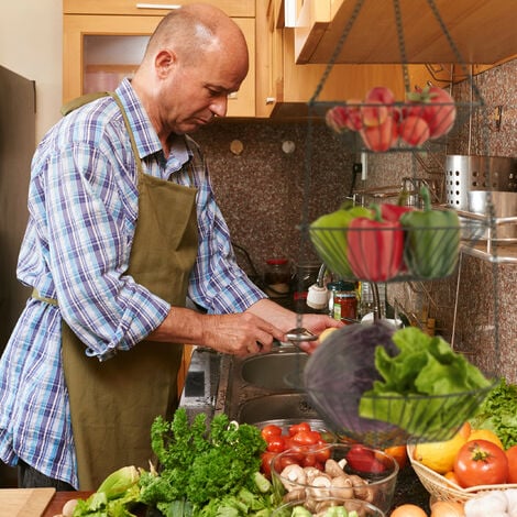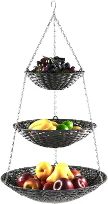 Mehr Platz in der Küche! Dieser 3-etagige Hängeobstkorb aus Metall nutzt die Höhe statt der Breite. Mit 84 cm Höhe und 29 cm Durchmesser bietet er viel Stauraum für Obst, Gemüse oder Brot. Jeder Korb trägt bis zu 8 Pfund. Das durchbrochene Design sorgt für Luftzirkulation - Obst bleibt länger frisch. Flexibel aufhängbar oder als einzelne Körbe verwendbar. In schwarz - passt zu jedem Küchendesign. Perfekt für kleine Küchen, Wohnmobile oder einfach mehr Ordnung. Endlich alles griffbereit und übersichtlich!