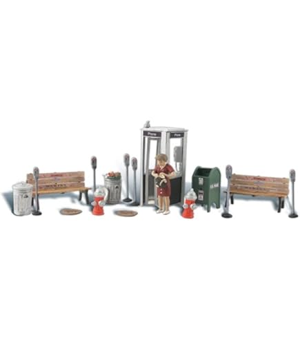 Woodland Scenics A1941 Straßenzubehör H0 - Telefonzelle Bänke Hydranten 1:87