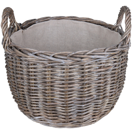Ordnung am Kamin? Mit diesem stylischen Feuerholzkorb von HABAU hast du dein Brennholz immer griffbereit und ordentlich verstaut. Der Korb in Grau mit 43cm Durchmesser ist aus super robustem, geflochtenem Polyethylen mit Metallrahmen - das gibt absolute Stabilität!\n\nDas geniale Feature: Der waschbare Stoffeinsatz! Er verhindert, dass Holzsplitter und Dreck auf deinen Boden rieseln. Und wenn der Einsatz mal schmutzig wird, einfach abnehmen und in die Waschmaschine stecken - praktischer geht's nicht!\n\nDie beiden beweglichen Tragegriffe aus dem gleichen robusten Material machen das Transportieren des Holzes super einfach. Du kannst den Korb voll beladen und trotzdem bequem tragen. Das Geflecht gibt etwas nach, sodass das Holz perfekt Platz findet.\n\nPerfekt für Wohnzimmer, Kaminzimmer oder auch draußen auf der Terrasse. Sieht nicht nur gut aus, sondern ist auch mega praktisch. Hält ewig und macht deine Holzlagerung so viel ordentlicher. Ein Must-Have für jeden Kamin- oder Ofenbesitzer, der Wert auf Stil und Praktikabilität legt!