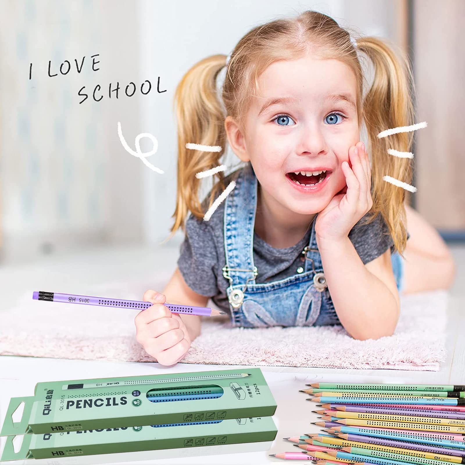 12 Stück HB Bleistifte Kinder - Dreikant Motivationsstifte Mit Radiergummi