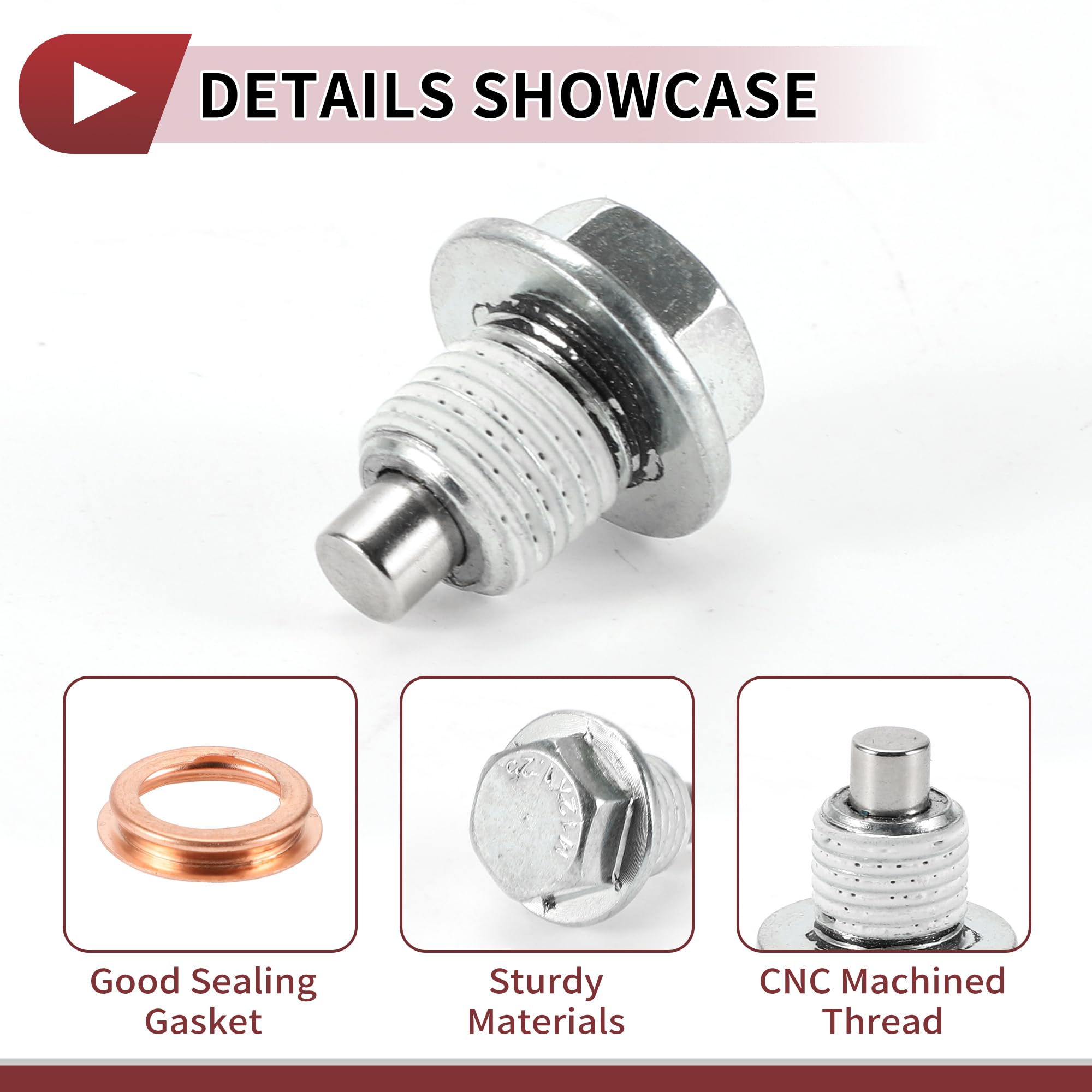 Perfekte Lösung für deinen nächsten Ölwechsel! Dieses Set mit 2 magnetischen Ölablassschrauben und Dichtungen passt ideal für Nissan und Infiniti Modelle. Mit dem robusten M12x1.25 Gewinde sitzt alles perfekt und hält schädliche Metallspäne fern. Super praktisch: Einfach nach dem Ölwechsel das Ende reinigen und schon kann die Schraube wieder verwendet werden. Das spezielle Metall ist verschleißfest und korrosionsbeständig - hält also ewig! Perfect für alle, die ihr Auto selbst warten wollen. Einfach die alte Schraube raus, neue rein - fertig! Vergiss nicht vor dem Kauf dein Gewinde zu checken, aber mit M12x1.25 passt es bei den meisten Modellen. Mach deinen Ölwechsel zum Kinderspiel und schütz deinen Motor vor lästigen Metallpartikeln. Das Set kommt mit allem was du brauchst: 2x Ölablassschraube + 2x Dichtung. Einfacher geht's nicht!