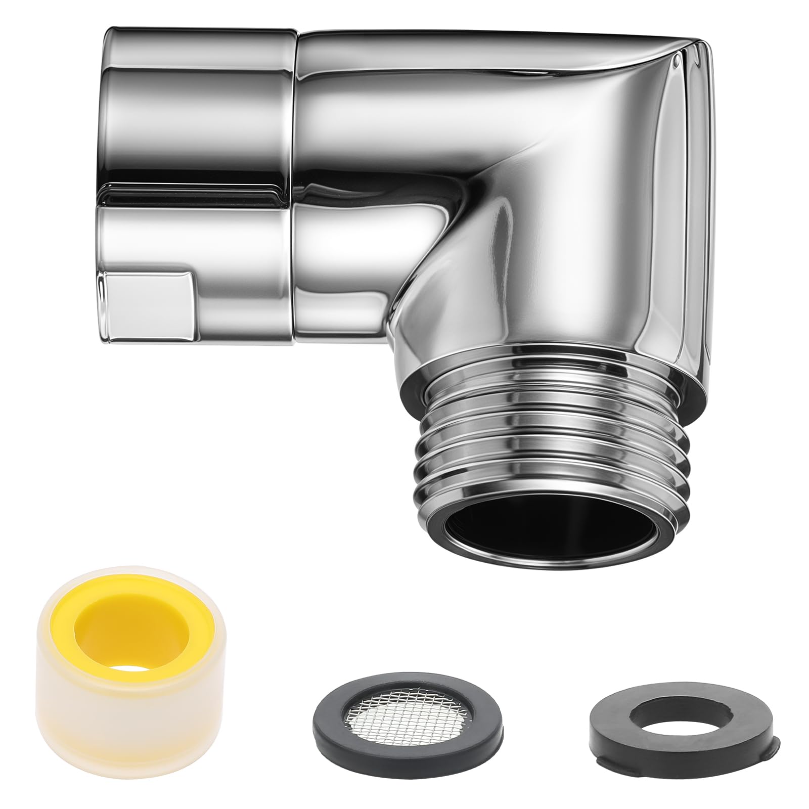 Endlich besser duschen! Dieser Duschkopf-Adapter aus Kupfer bringt deine Dusche aufs nächste Level. Mit verstellbaren Winkeln: 90 Grad und 135 Grad - so findest du immer die perfekte Position. Aus einem Stück gegossen und bruchsicher, das Teil hält echt was aus! Die industrielle Verchromung schützt vor Rost und Korrosion. Einfach zu installieren: Dichtungsring rein, drehen - fertig! Dauert nur wenige Minuten. Der universelle 1/2\ Anschluss passt an die meisten Duschköpfe, Duschschläuche und Brausen. So kannst du den Wasserstrahl genau da hin richten wo du ihn brauchst. Besonders praktisch bei niedrigen Duschköpfen oder um die Reichweite zu vergrößern. Die verstärkte Konstruktion verhindert Undichtigkeiten - kein tropfen mehr! Einfach ein game-changer für dein Badezimmer. Ob für die Regendusche oder Handbrause - mit diesem Adapter machst du nichts verkehrt!