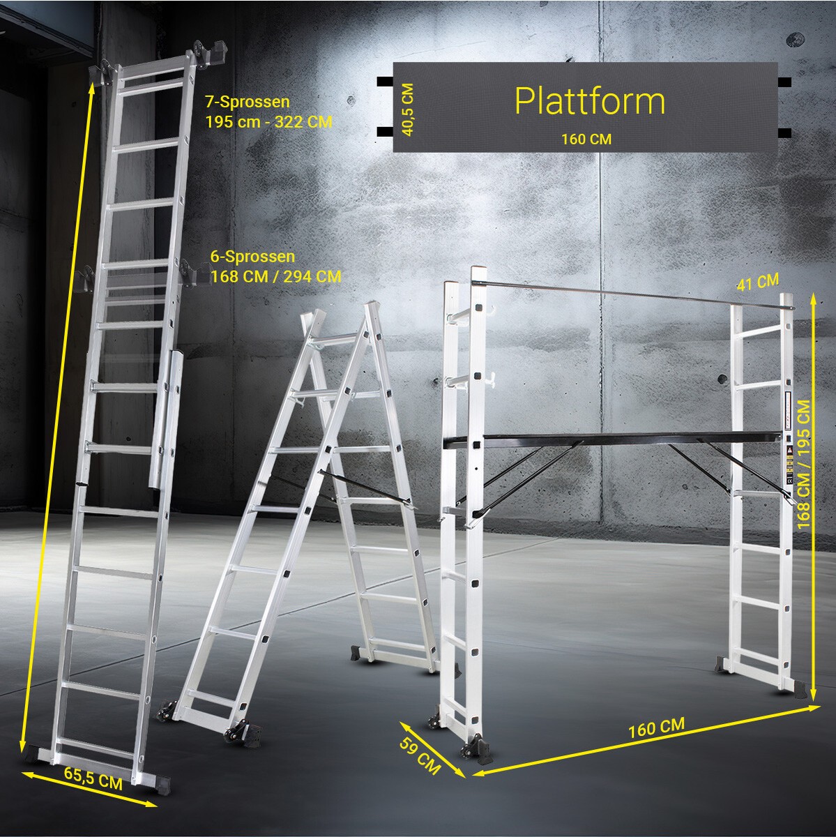 Für fast alles zu gebrauchen: Höhe verstellbar auf 50, 60 oder 70 cm. Ob Autowäsche, Streichen, Fensterputzen oder Bastelarbeiten - die Bühne macht's möglich.