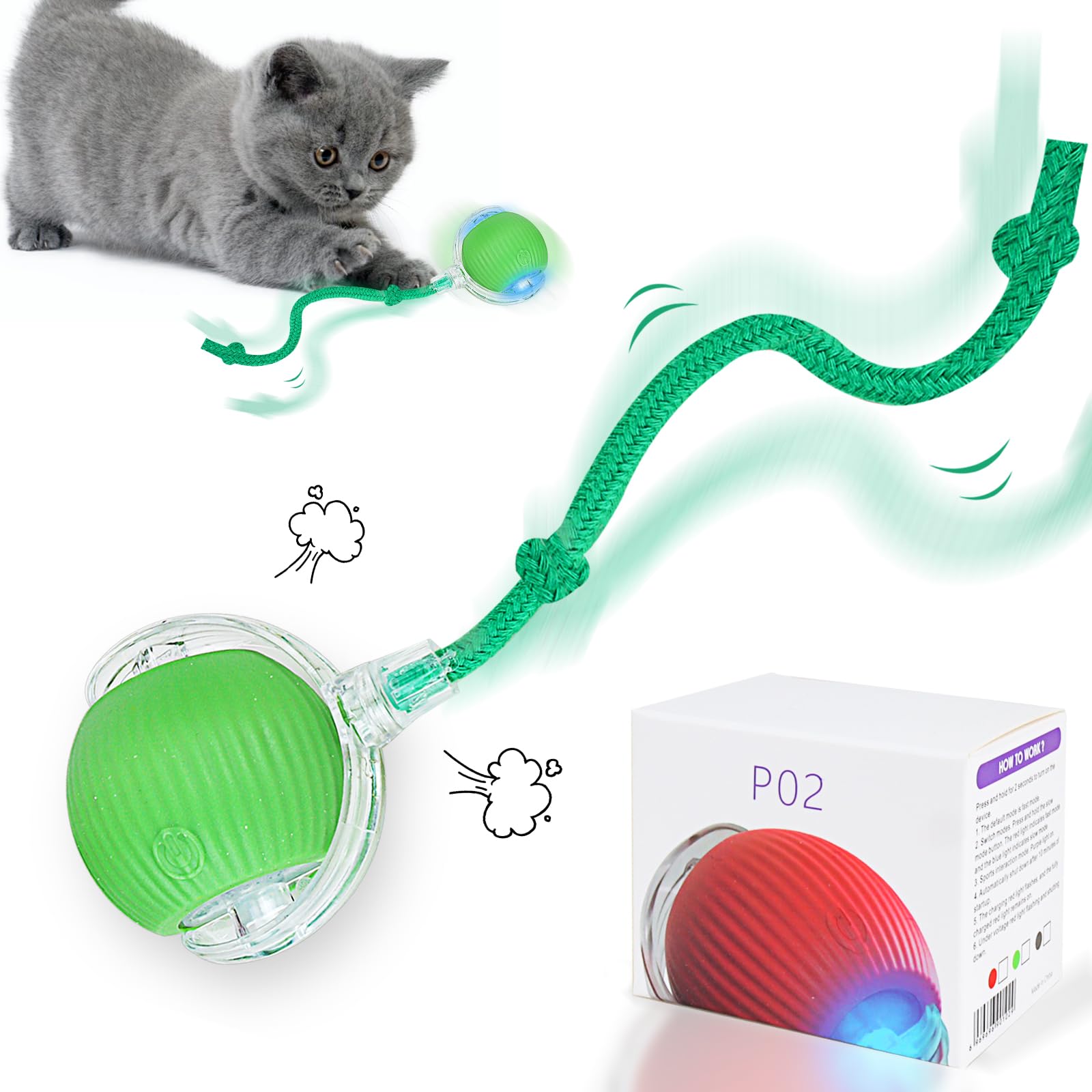 HOIDOKLY Elektrischer Katzenball - USB-aufladbar Mit 3 Spielmodi