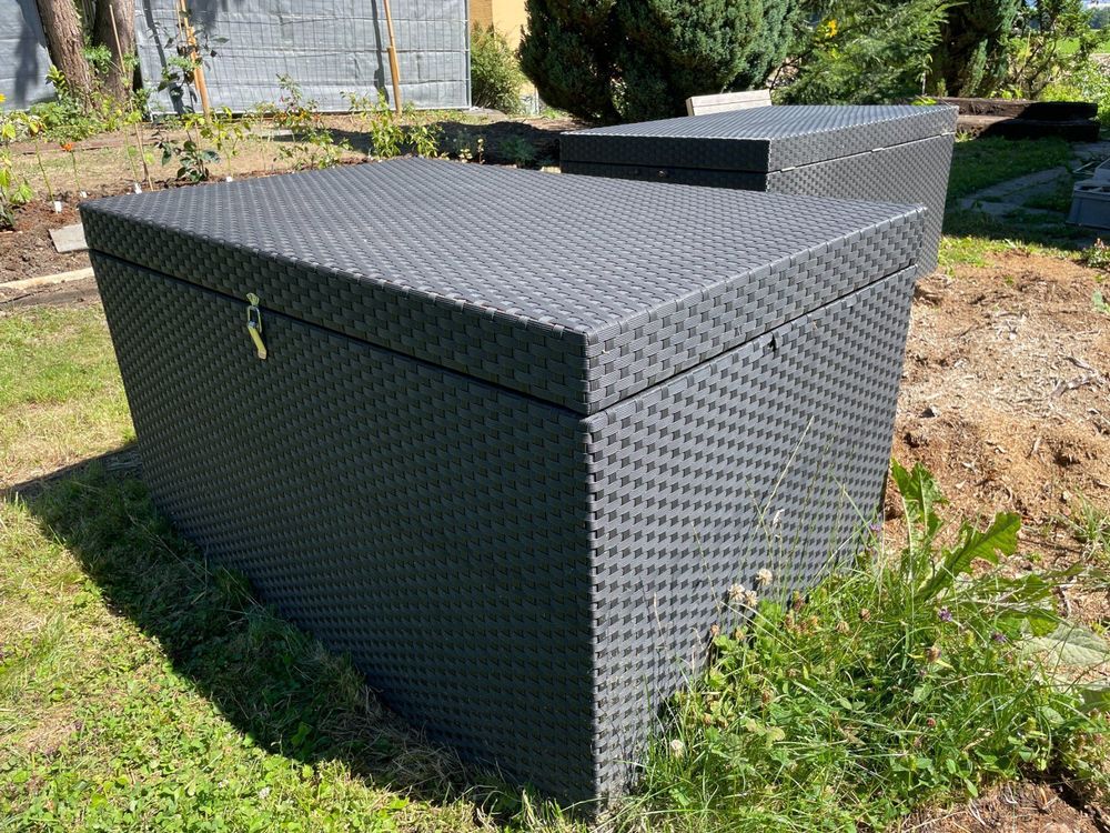Das wasserdichte Innenfutter schützt deine Kissen und Gartenutensilien vor Regen und Feuchtigkeit. Die L-förmigen Kunststofffüße halten Feuchtigkeit und Insekten fern. Mit 95x60x58cm passt die Box perfekt in jede Ecke und macht deinen Außenbereich sofort aufgeräumter und gemütlicher!