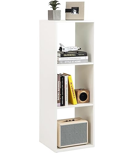 HOMASIS Bücherregal 3 Ebenen S-Form - Standregal Weiß 80x22x70cm Bis 45kg Belastbar