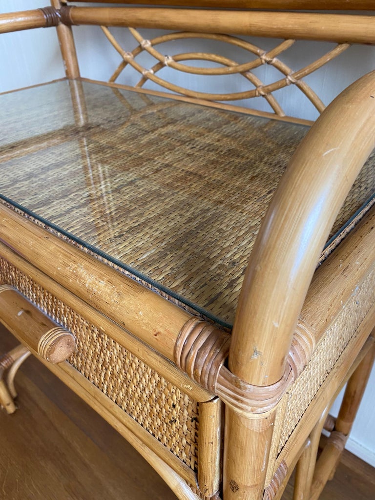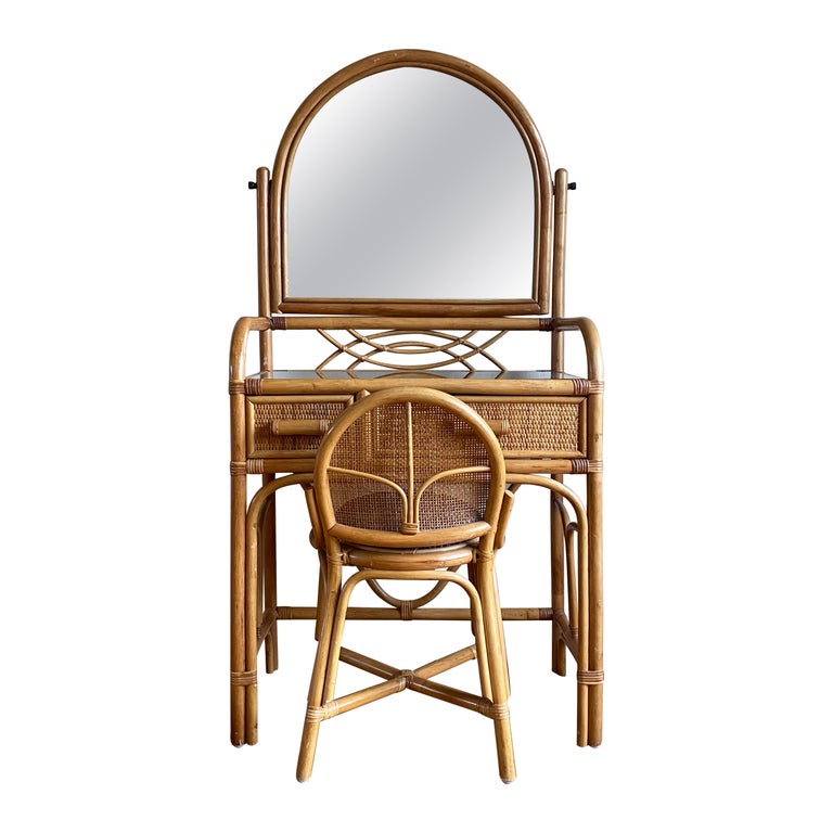HOMASIS Schminkhocker Aus Bambus - Stylische Sitzbank Mit Rattan-Optik