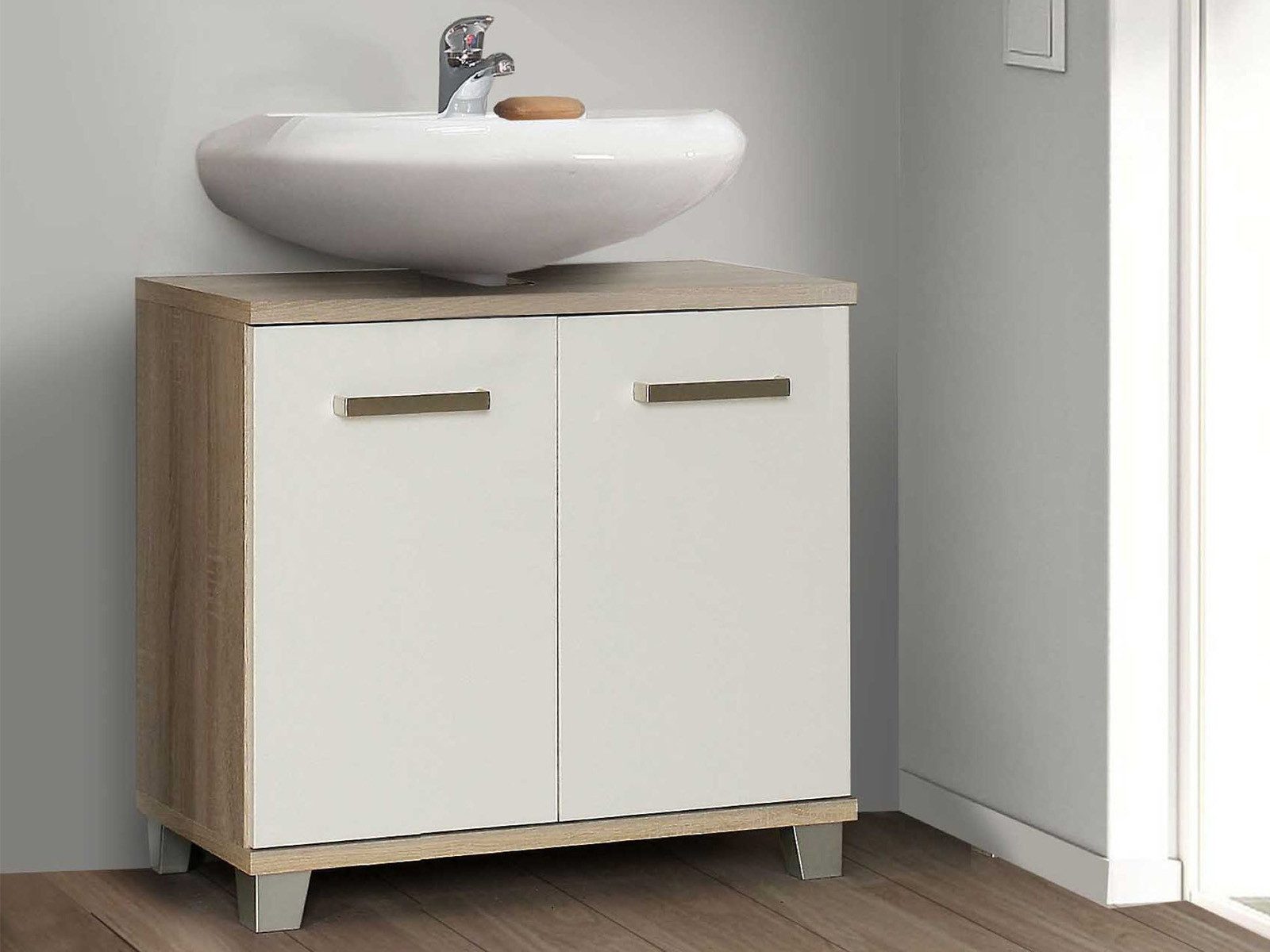 Der U-förmige Ausschnitt (7x24 cm) ist genau das Richtige für Waschbecken ohne Sockel. So kannst du den Platz optimal nutzen, der sonst ungenutzt bleiben würde. Hinter den zwei Türen versteckt sich ein praktisches, verstellbares Regal - da kannst du alles Mögliche unterbringen: Putzmittel, Kosmetik, Handtücher oder was auch immer bei dir so im Bad rumliegt.