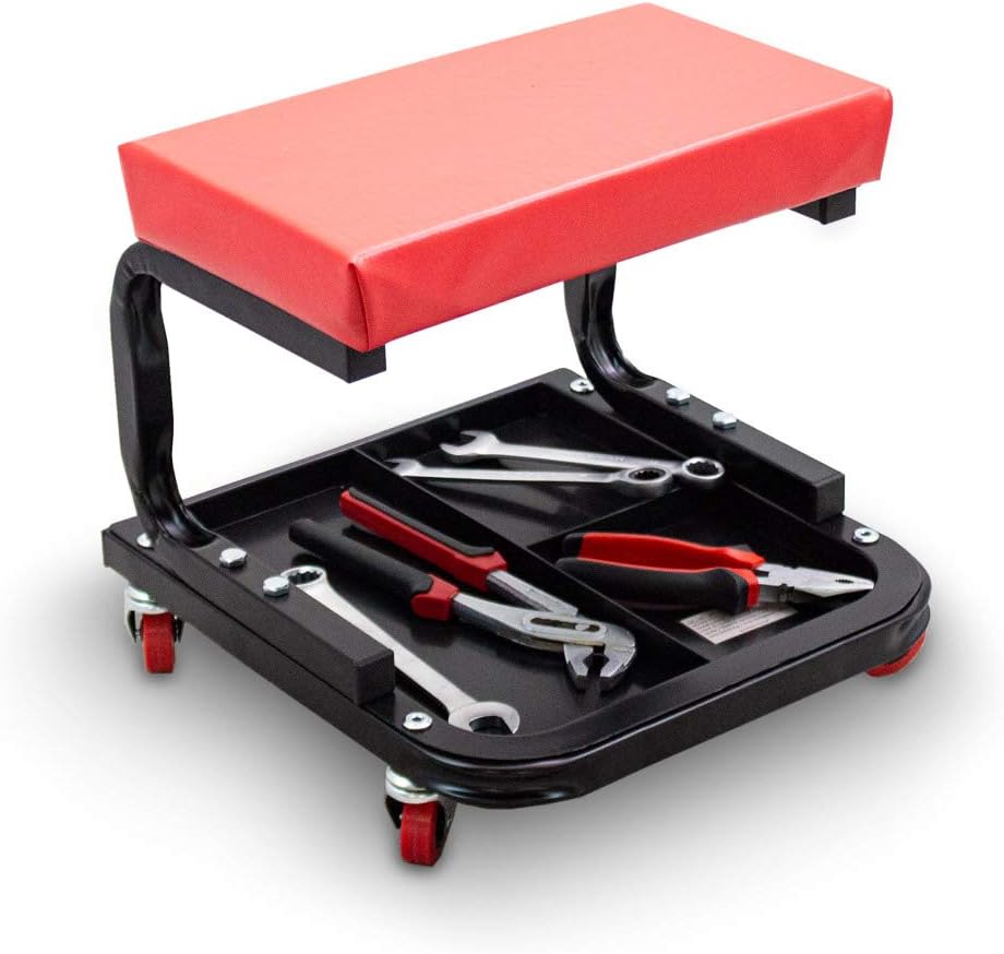 HOMCOM Werkstatthocker Mit Rollen - Praktischer Rollsitz Mit Ablagefächern Für Deine Werkstatt