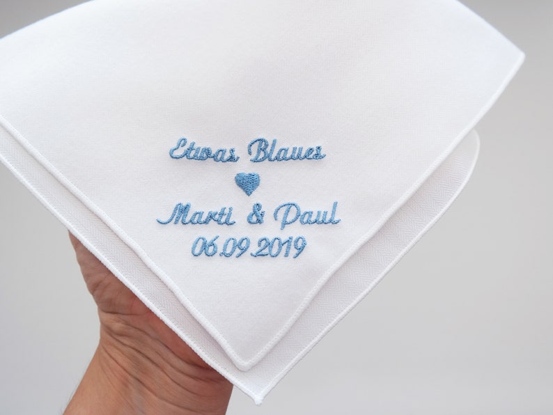 Für die Tränen des Glücks! 💒 Dieses wunderschöne Hochzeitstaschentuch aus 100% Baumwolle ist der perfekte Begleiter für den großen Tag. Mit zarter blauer Stickerei und welligem Rand, ca. 28x28cm groß. Weich, saugfähig und hautfreundlich. Ideal für die Braut, den Bräutigam oder als Geschenk für Eltern und Trauzeugen. Wird mit handgeschriebener Grußkarte im blauen Umschlag geliefert. Einfach vor der ersten Verwendung waschen (Handwäsche bei 30°C empfohlen). Ein bleibendes Erinnerungsstück an den schönsten Tag im Leben!