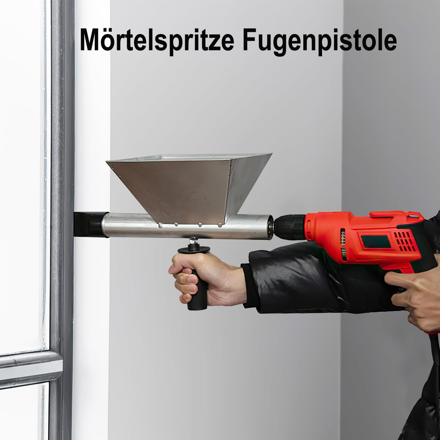 Schluss mit mühsamen Fugen von Hand! Diese elektrische Fugenpistole erledigt die Arbeit im Nu. Einfach an den Akkuschrauber anschließen und losgeht's. Mit vier austauschbaren Düsen (flach und rund) für unterschiedliche Fugenbreiten. Die trichterförmige Öffnung macht das Befüllen super einfach. Das arbeitssparende Lager am Ende sorgt für stabile Arbeitsergebnisse. Aus robustem Eisen gefertigt, hält das Gerät auch bei intensivem Einsatz lange. Perfekt für Bodenfugen, Steinmauern oder andere Mörtelarbeiten. Einfach nach Gebrauch die Düse reinigen - schon ist die Pistole bereit für den nächsten Einsatz. Deutlich schneller und gleichmäßiger als von Hand!