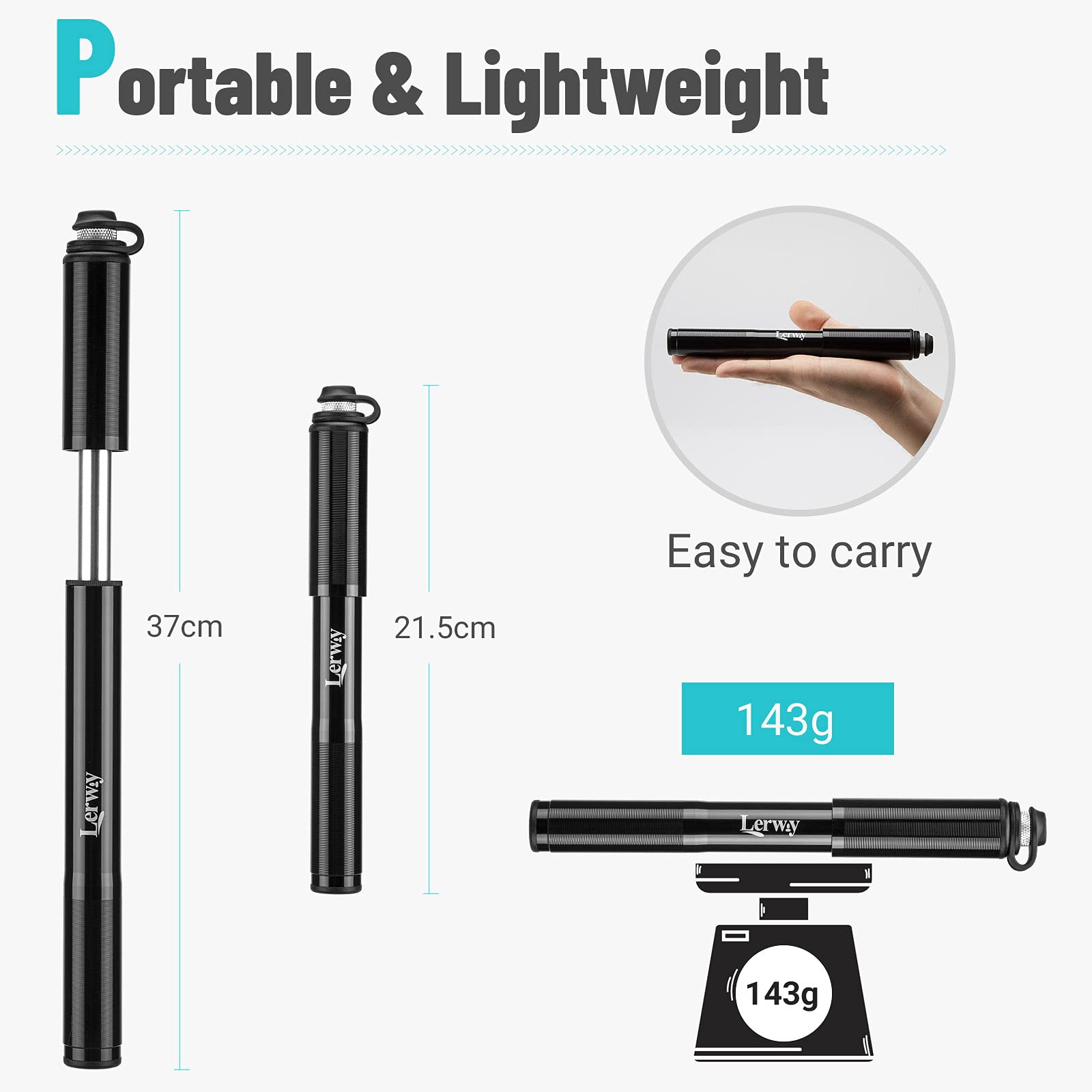 TWIRL Matrix HP11 Mini Fahrradpumpe - Ausziehbarer Schlauch Für Alle Ventile Bis 11 Bar, Nur 94g Leicht