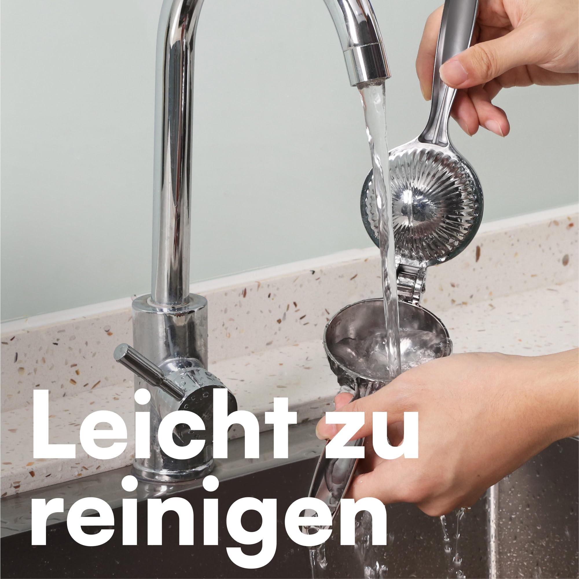 Frisch gepresster Saft in Sekunden! Diese Hand-Zitronenpresse holt jeden Tropfen aus Zitronen, Limetten und anderen Zitrusfrüchten. Aus rostfreier Zinklegierung, mit bequemen Griffen. Fängt Kerne und Fruchtfleisch auf - nur reiner Saft kommt durch. Spülmaschinenfest, leicht zu reinigen. Perfekt für Küche, Bar oder unterwegs. Einfuch Frucht halbieren, reinlegen, zudrücken - fertig!