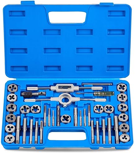 Richtig professionell! Dieser 110-teilige Gewindeschneidsatz hat alles, was du für Gewinde von M2 bis M18 brauchst. Aus hochwertigem HSS-Stahl - hart, verschleißfest und langlebig. Mit verstellbarem Schraubenschlüssel für einfache Handhabung. Die Gewindebohrer sind vollständig geschliffen für saubere Ergebnisse ohne Ausreißer. Perfekt für Stahl, Aluminium, Kupfer, Holz und Kunststoff. Ob in der Werkstatt, für Maschinenwartung oder Heimwerker-Projekte - dieses Set ist ein Allrounder! Die Matrizen haben Verriegelungslöcher für extra Stabilität. Mit T-Schlüssel und verschiedenen Steckschlüsseleinsätzen. Einfach bestellen und jedes Gewinde-Projekt meistern! Qualitäts-Werkzeug, das lange hält.