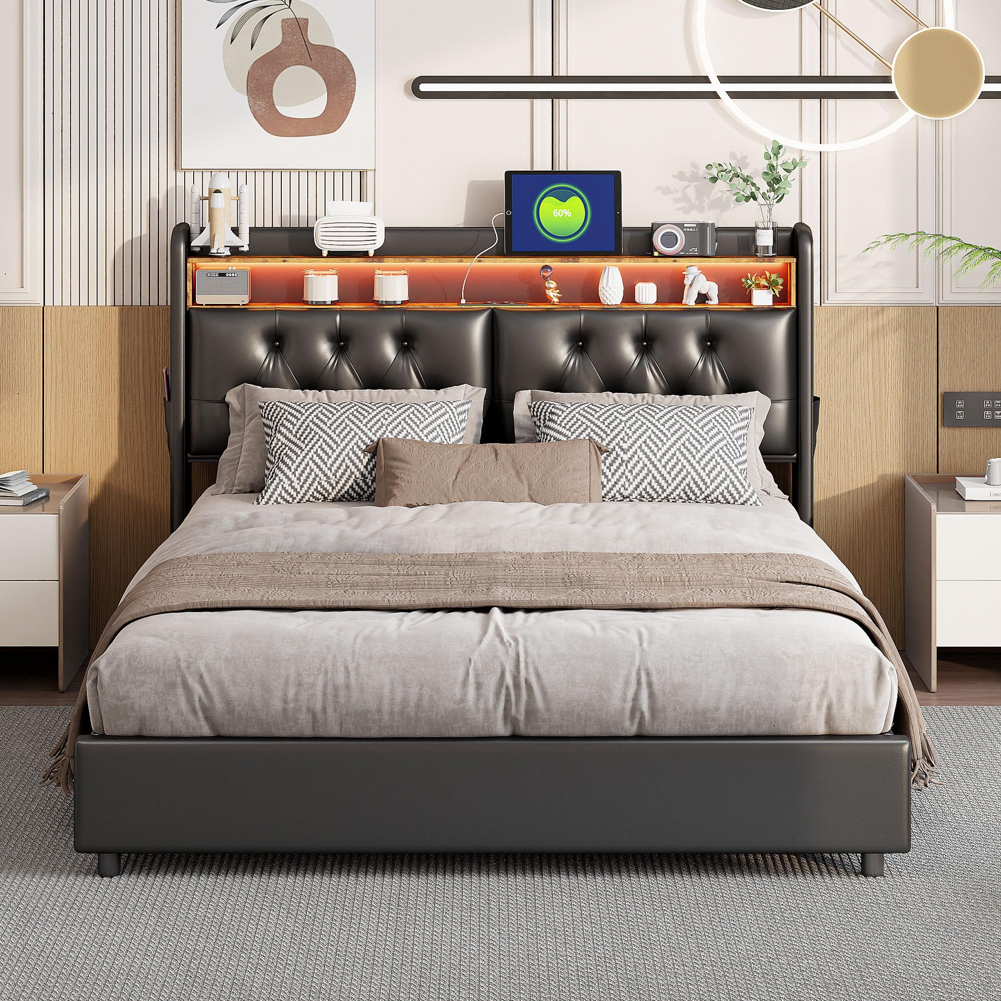 HYTKKBD Doppelbett 140x200cm Mit LED & Wireless Charging - Stauraum Bett
