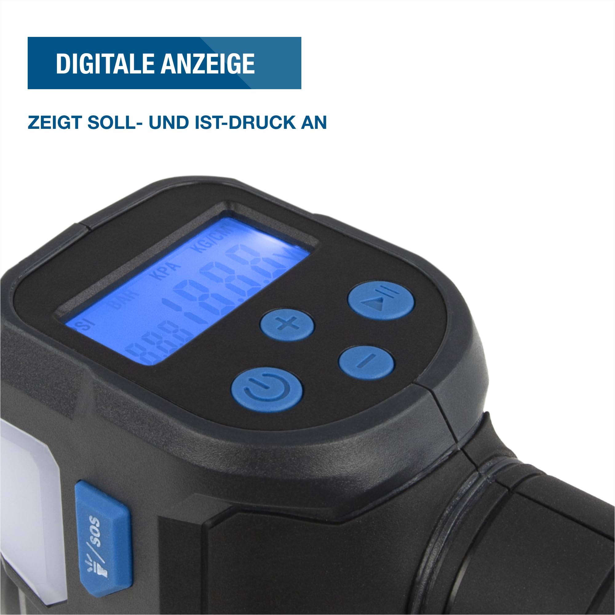 Der praktische Begleiter für unterwegs! Dieser HYUNDAI Akku-Kompressor mit 20V Leistung pumpt Autoreifen, Fahrräder und Sportgeräte bis zu 10 bar auf. Mit automatischer Abschaltung beim Erreichen des eingestellten Drucks. Inklusive 2.0Ah Akku und Ladegerät - sofort einsatzbereit. Das LCD-Display zeigt den aktuellen Druck an. Besonders praktisch: Integrierte LED-Taschenlampe und SOS-Blinklicht für Notfälle. Nur 1,3 kg leicht und mit Tragegriff - perfekt für Auto, Camping oder Garage. Im Lieferumfang sind alle Adapter für Reifen, Bälle und Luftmatratzen enthalten. Ein Allrounder für alle Aufblas-Aufgaben!