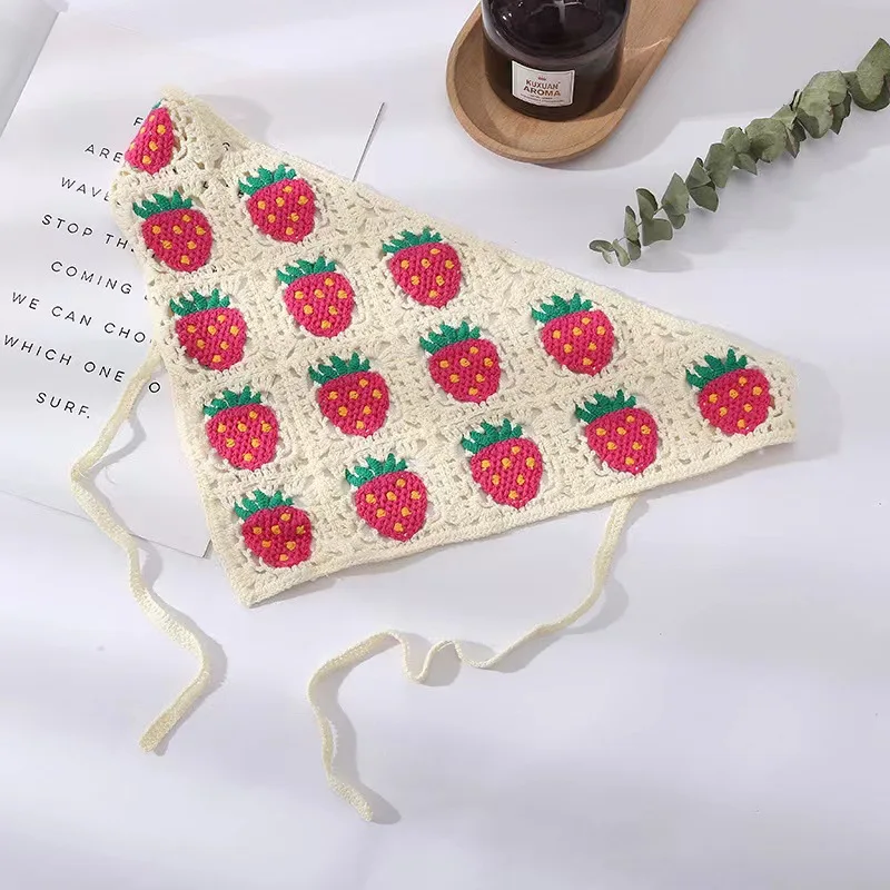 FSSTUD Erdbeer-Haar-Bandana - 2er Set Gehäkelt Aus Acryl, 50x23cm