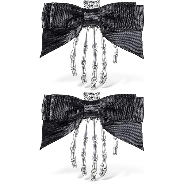 2 Stück Halloween Totenkopf Haarnadeln - Gothic Haarspangen Mit Schwarzer Schleife
