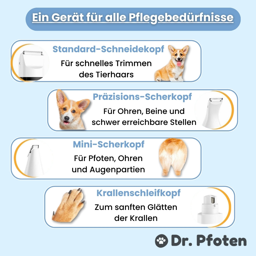 Flintronic 4in1 Haarschneider Für Hunde & Katzen - Leiser Trimmer Mit 4 Aufsätzen Für Pfoten, Gesicht, Ohren
