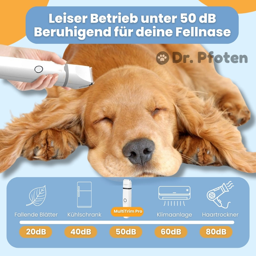 Perfekte Fellpflege für deine Vierbeiner! Der flintronic 4in1 Trimmer ist wie eine kleine Wellness-Behandlung für Hunde und Katzen. Mit vier verschiedenen Aufsteckkämmen (3-12 mm) kannst du ganz easy unterschiedliche Haarlängen stylen. Super leise mit unter 60 dB - perfekt für geräuschempfindliche Tiere. Der Akku hält 50 Minuten und ist wasserfest ladbar. Die Keramik- und Titanklingen sind extra schonend und bleiben nicht hängen. Inklusive Nagelfeile, Schere und Kamm - alles was du brauchst in einem Set! Einfache Reinigung, ergonomisches Design. Mach dein Haustier fröhlich und gepflegt ohne Stress!