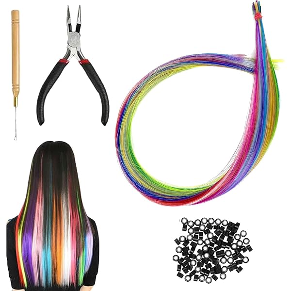 Kreative Frisuren in Minuten! Dieses riesige 50-teilige Haarsträhnen-Set macht aus jedem Mädchen eine Styling-Queen. Enthalten sind bunte Haarsträhnen in verschiedenen Farben, 50 Perlen, eine Schere und eine Häkelnadel - alles, was du für tolle Zöpfe und Flechtfrisuren brauchst. Die Strähnen lassen sich einfach einklipsen und sind perfekt für Cosplay, Partys oder den Alltag. Aus weichem Kunsthaar sind sie angenehm zu tragen und halten lange. Ob bunte Highlights, bunte Flecht-Elemente oder komplett neue Looks - mit diesem Set sind deiner Fantasie keine Grenzen gesetzt. Einfach auspacken und losstylen!