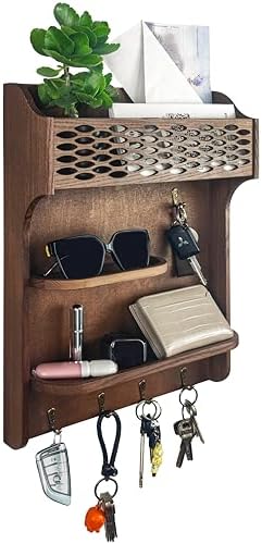 FESSOSKO Schlüsselbrett Holz Mit 8 Haken | Weiß Kiefernholz | Mit Ablagefläche | Für Flur