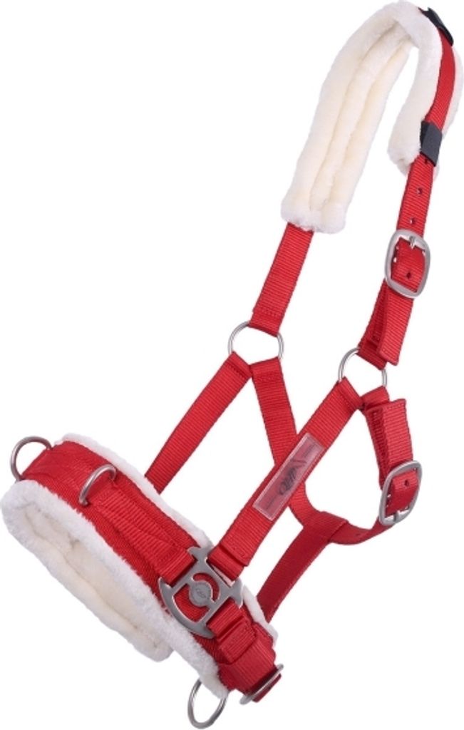 QHP Kappzaum Halfter-Kombi Shetty - Kunstfell Polsterung Mit 3 Edelstahl D-Ringen