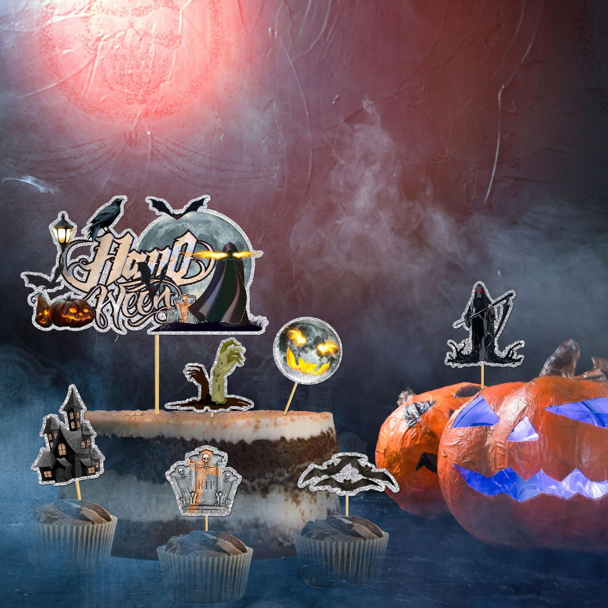 12 Stück Halloween Cupcake Toppers - Fledermaus, Spinne, Geist Deko Für Kuchen & Muffins