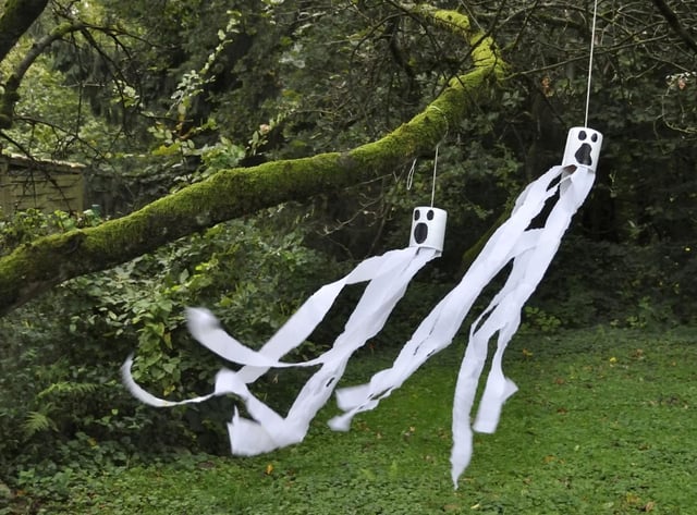 Gruselige Halloween-Deko für deinen Garten! Diese hängenden Geister auf Schaukeln sind richtig creepy. Mit LED-Lichtern die gruseliges Licht ausstrahlen. Höhe von 1,5m bis 4m verstellbar - perfekt für Bäume oder Vordächer. Einfach mit Fernbedienung bedienbar, 8 Beleuchtungsmodi und Timer (6h an, 18h aus). Nur 3 AA Batterien nötig. Aus wetterfestem Polyester, bewegt sich realistisch im Wind. Der absolute Hingucker für deine Halloween-Party - da bleiben die Nachbarn staunen!