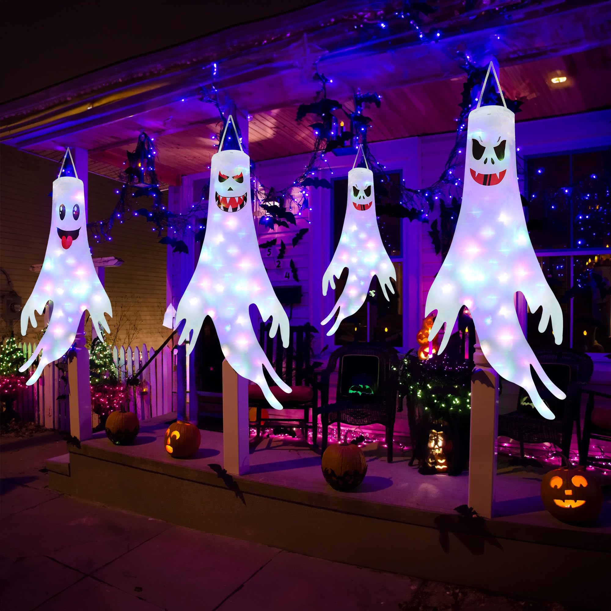 Halloween Geister-Kronleuchter - Leuchtende Geister-Deko Mit LED Für Garten & Haus