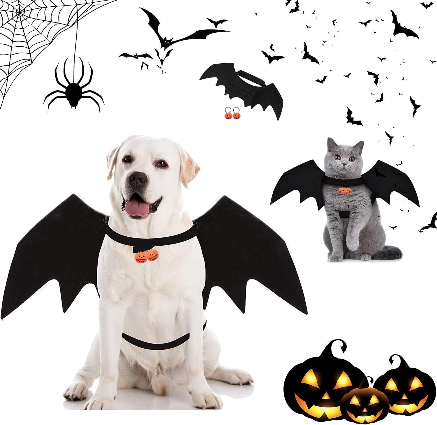Halloween Haustier Kostüm Fledermausflügel - Für Hunde & Katzen Mit Kürbis Glöckchen