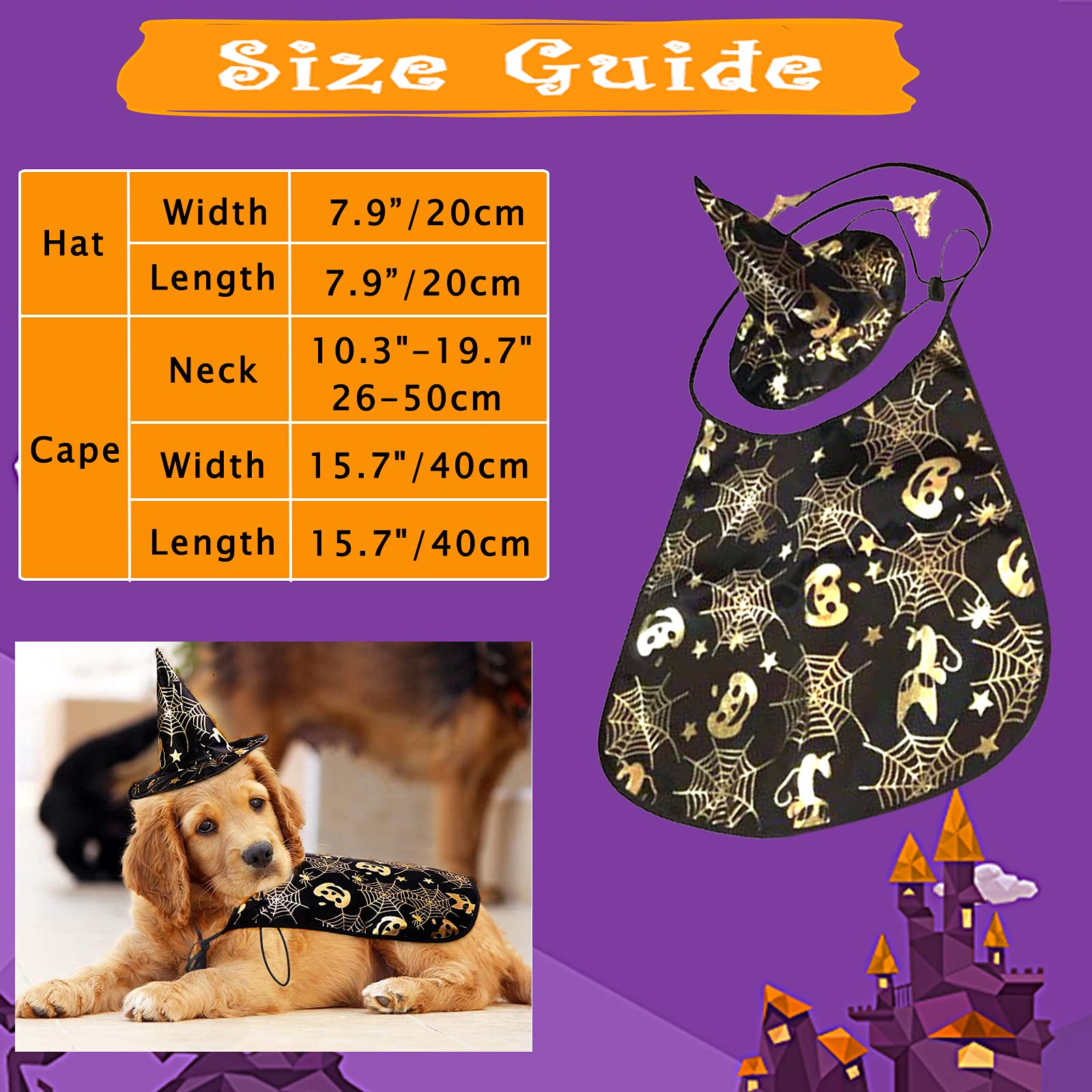 Halloween Hundekostüm Lila - Hexenumhang & Hut Für Kleine & Mittlere Hunde