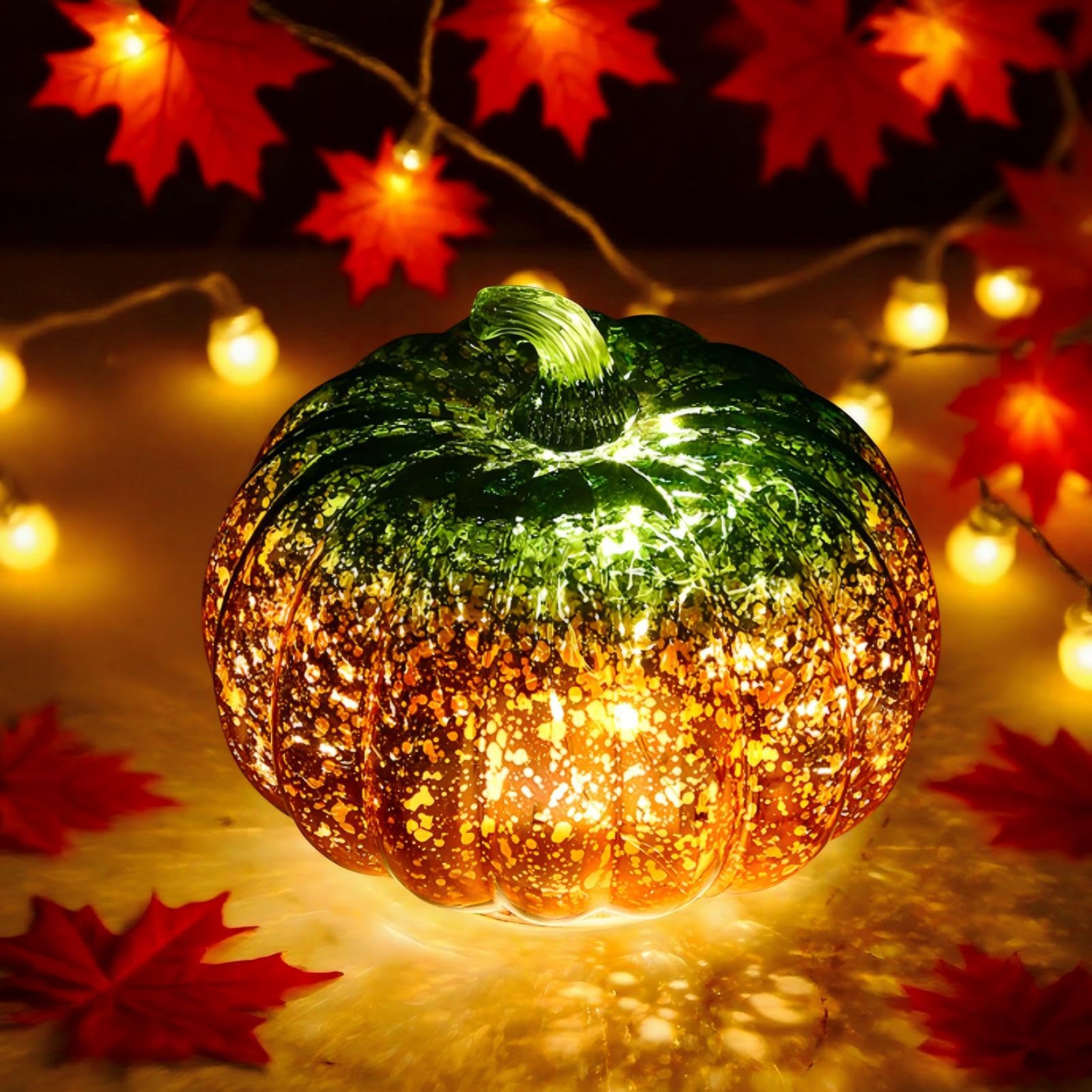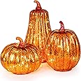 Halloween Kürbis Lichter Mit LED Timer - Glas Figuren Mit Flackerndem Licht Für Herbstdeko