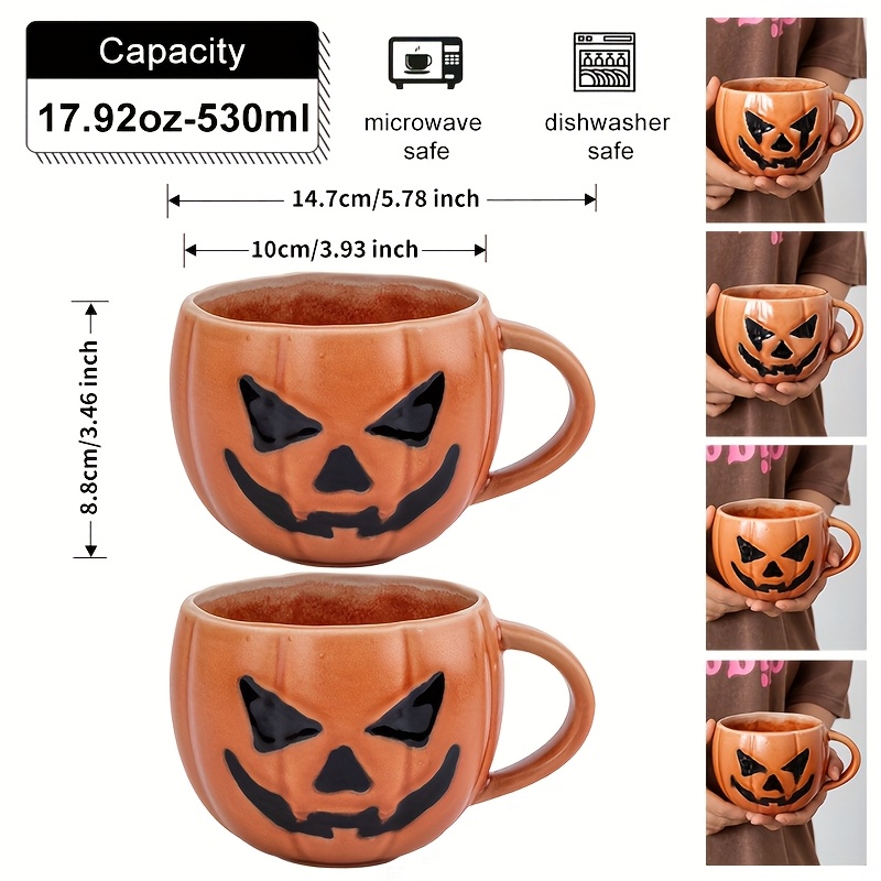 Halloween Kürbis Tasse 600ml - Keramik Becher Mit Grusel-Design Für Kaffee & Tee