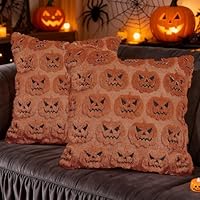 Halloween Kissenbezug 45x45cm 2er Set - Geister Deko Plüsch Orange