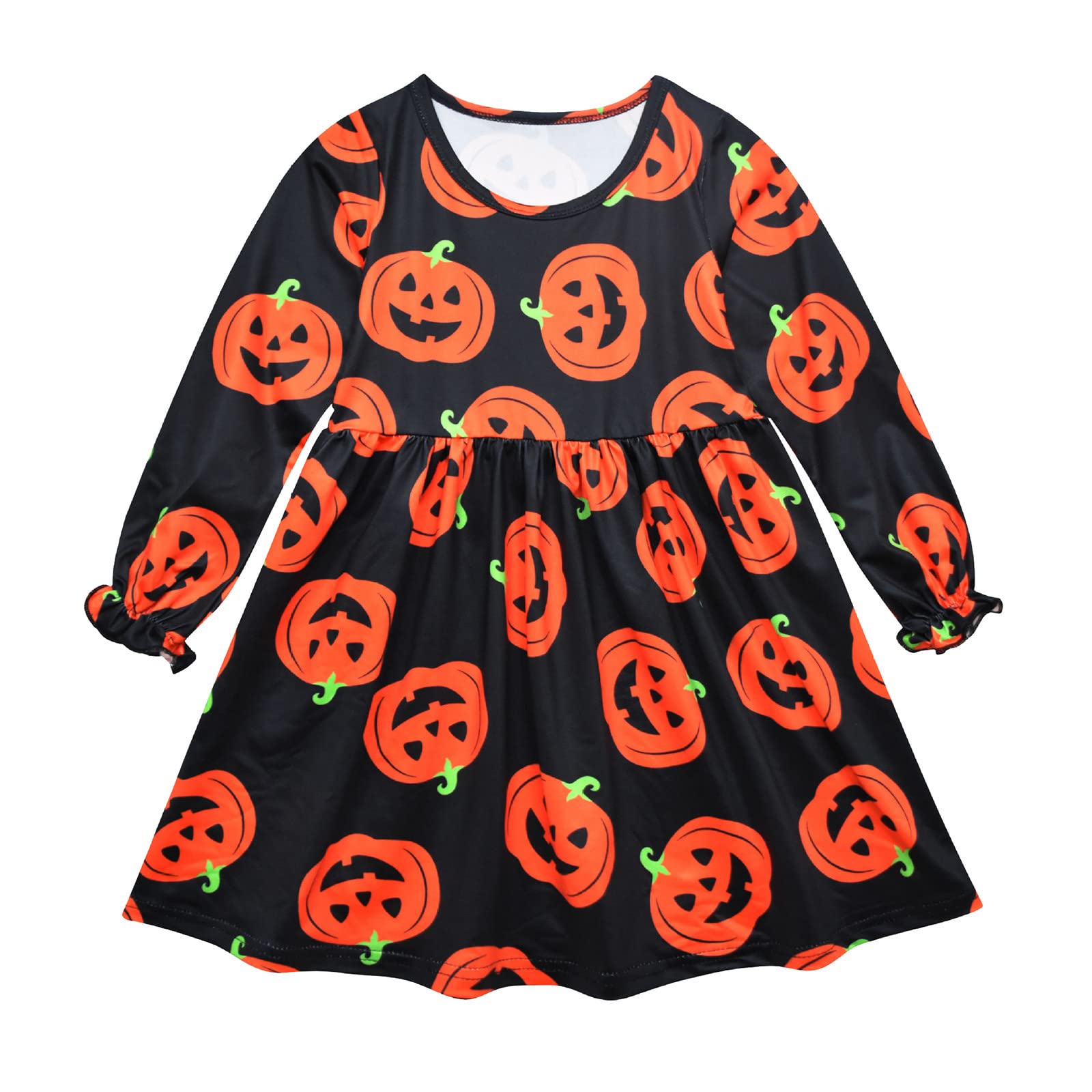 Süßes Halloween Kleid Für Mädchen - Kürbis Motiv Mit Rüschen