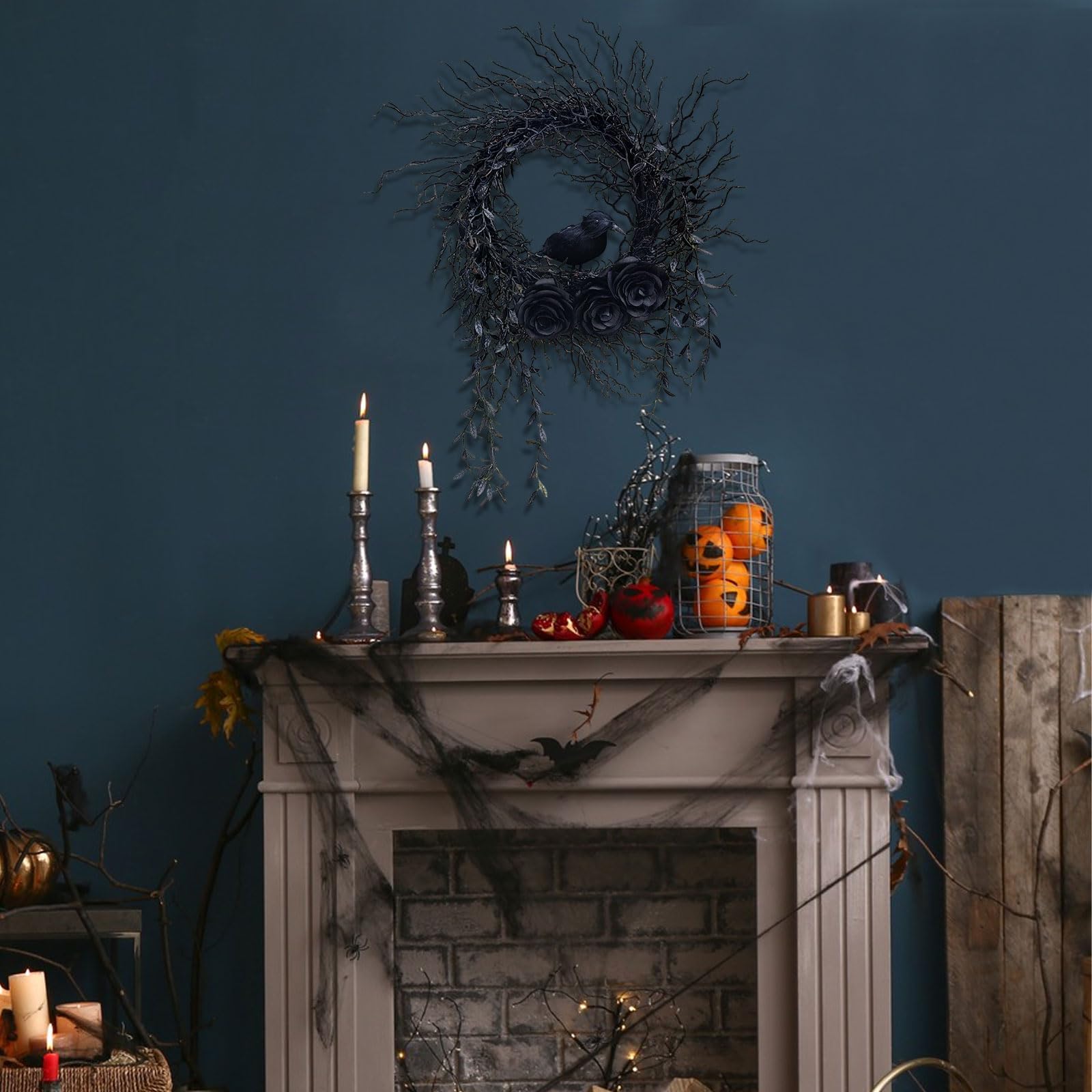 Halloween Krähenkranz 45cm - Grusel-Deko Für Tür & Wand