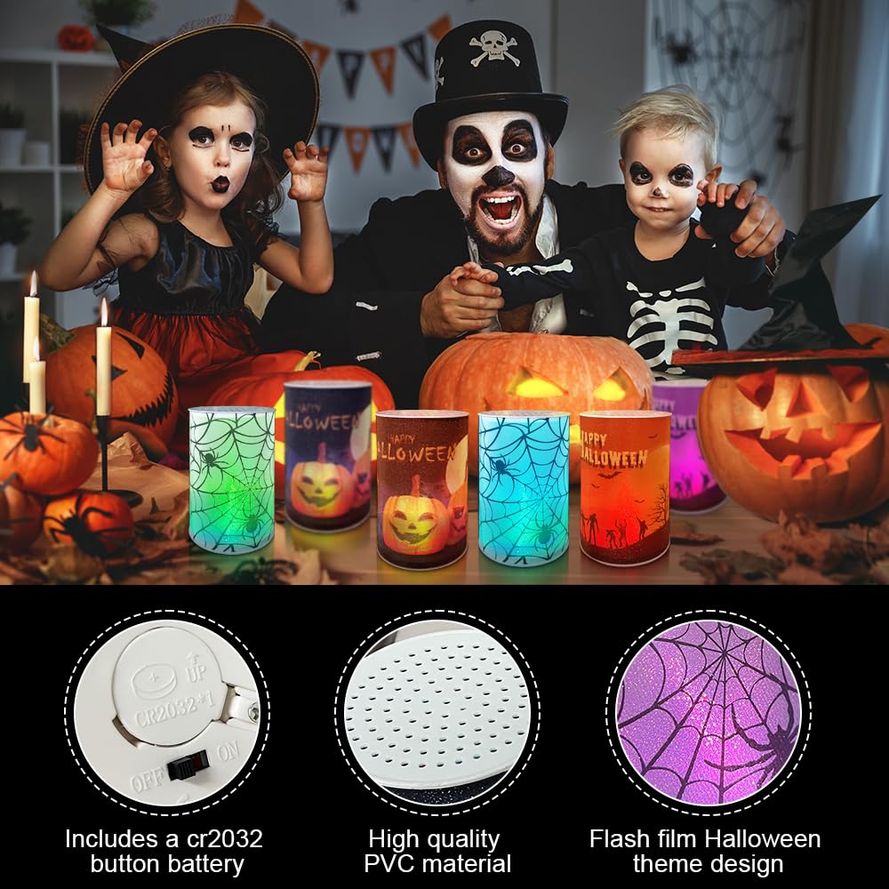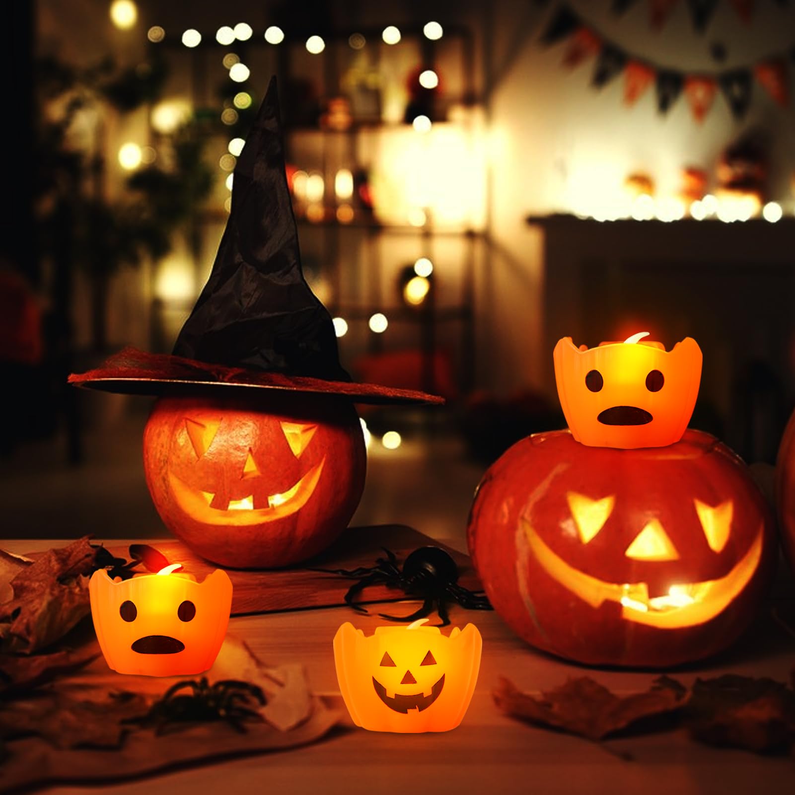 6 Stück Halloween LED Kerzen - Kürbis Deko Für Innen Und Außen