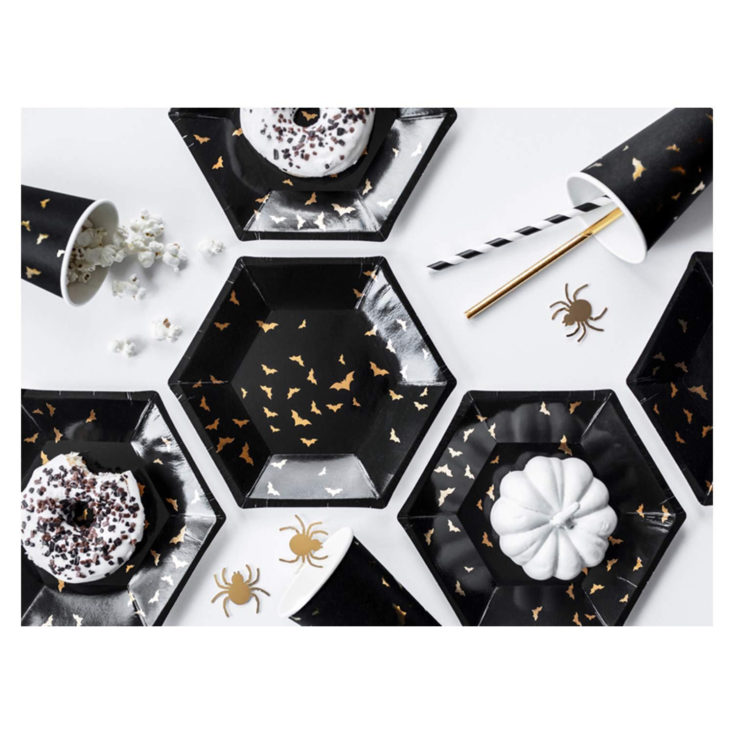 Gruseliger Spaß für deine Halloween-Party! Diese 6 schwarzen Pappteller mit goldenen Fledermäusen sind perfekt für deine Feier. 20 cm Durchmesser - ideal für Kekse, Muffins oder kleine Snacks. Machen jede Tischdeko komplett. Auch super für Fasching oder Mottopartys. Einfach zu verwenden und danach entsorgen - kein Abwasch! Deine Gäste werden begeistert sein. Schafft sofort Party-Stimmung. Hol dir jetzt diese coolen Teller und mach deine Halloween-Feier unvergesslich! Perfekt für Kinder und Erwachsene - gruselig aber harmlos. Bestell gleich mehrere Packungen für viele Gäste!