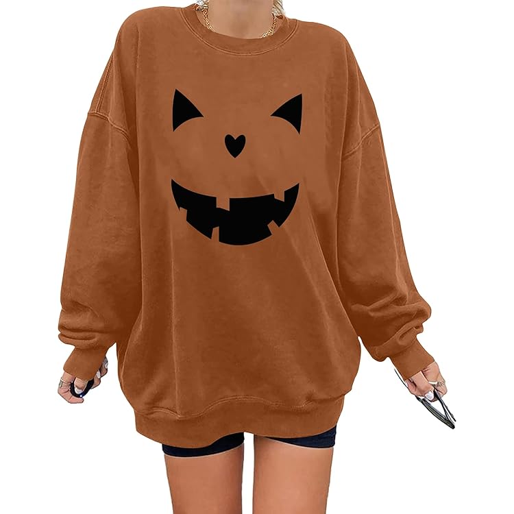 Halloween Pullover Unisex - Kürbis Druck Langarm Sweater Vintage Look