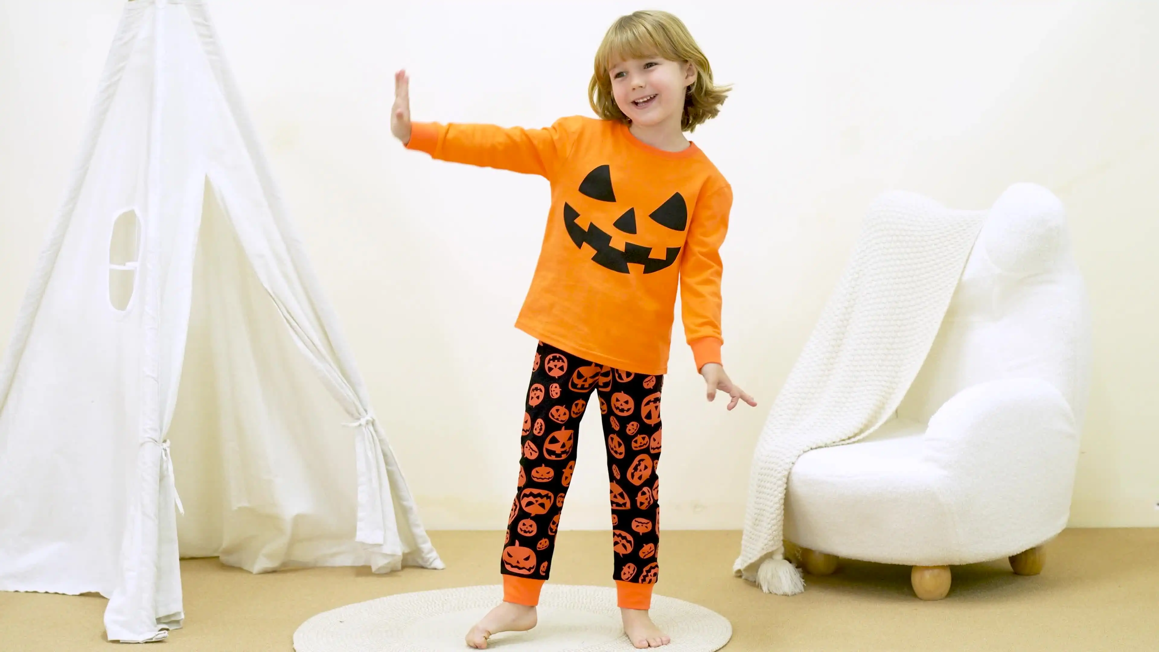Perfekt für gruselige Nächte! Dieser 2-teilige Halloween Schlafanzug mit Skelett- und Kürbis-Druck macht jede Nacht zur kleinen Halloween-Party. Langarm-Oberteil und Hose aus atmungsaktivem Material - bequem für erholsamen Schlaf. Kann auch als Kostüm für Halloween-Events verwendet werden. Einfach an- und ausziehen dank separates Oberteil und Hose. Maschinenwaschbar - praktisch für den täglichen Gebrauch. Weicher Stoff der nicht kratzt und die Haut atmen lässt. Dein Kind wird diesen coolen Pyjama lieben - ob zum Schlafen, Spielen oder für die nächste Halloween-Party. Süß und praktisch zugleich!