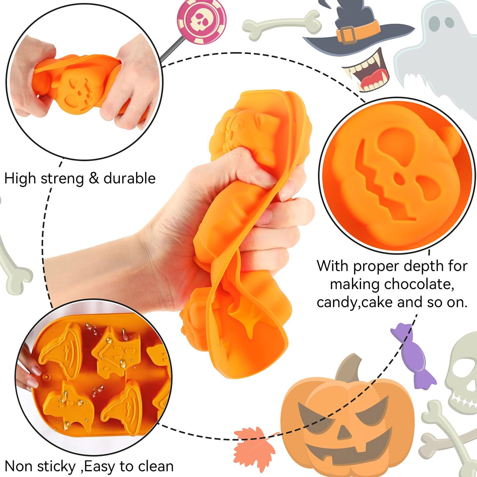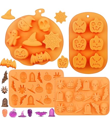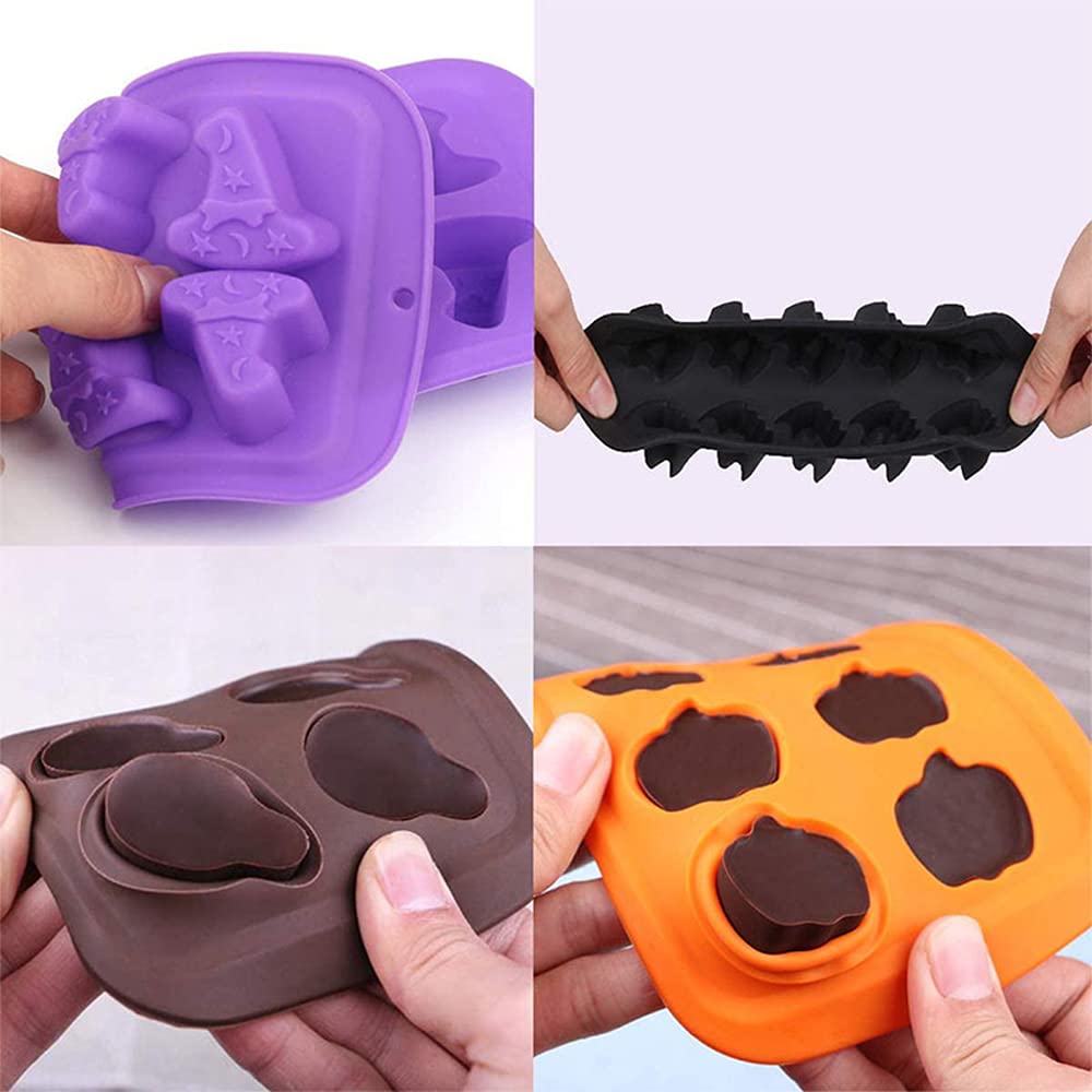 Boo! Diese 4 Halloween-Silikonformen bringen gruseligen Spaß in deine Küche. Mit Kürbissen, Geistern, Totenköpfen und Fledermäusen kannst du die coolsten Halloween-Leckereien kreieren. Ob Schokolade, Kekse, Eiswürfel oder Gelee - deiner Kreativität sind keine Grenzen gesetzt!