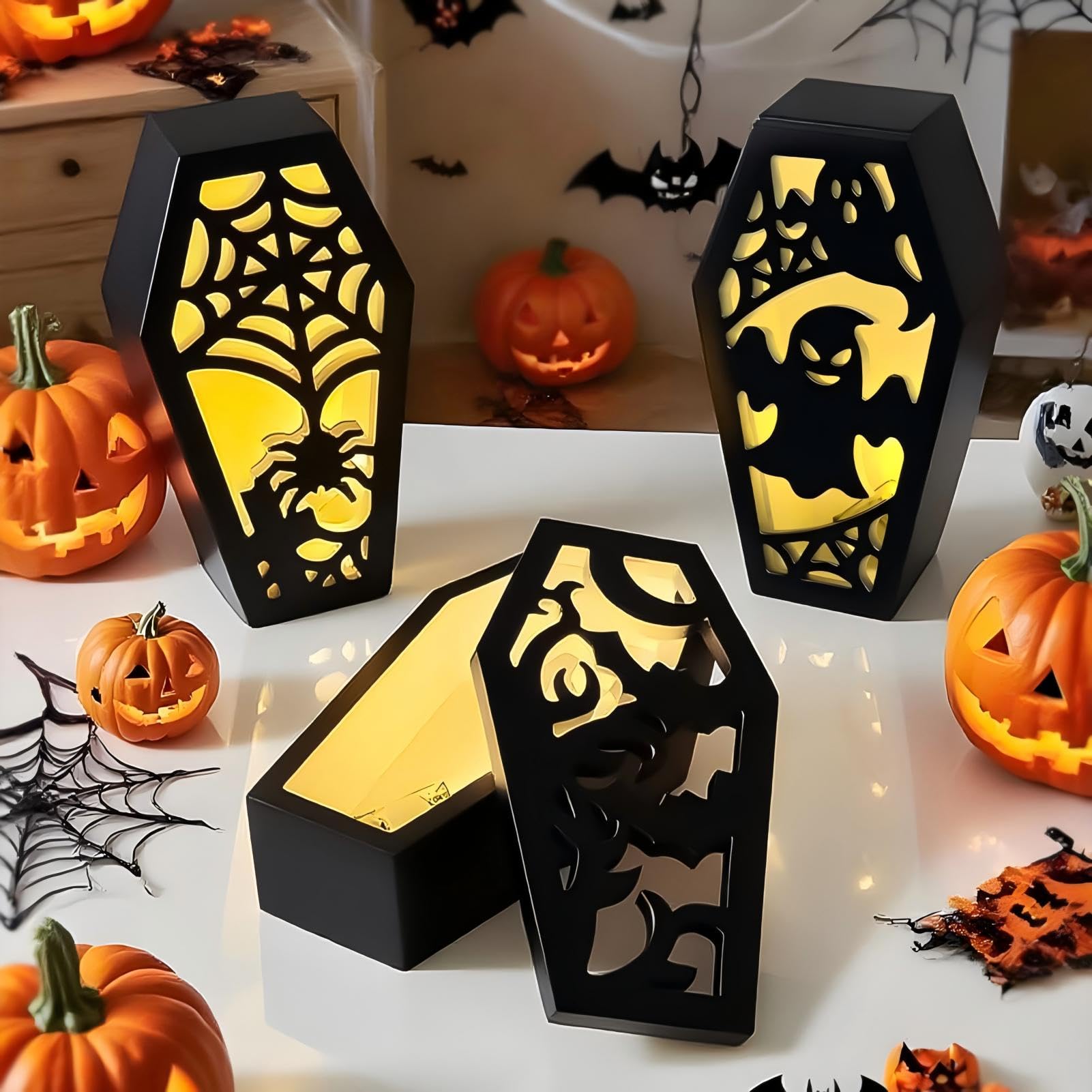 Boo! Mach deine Halloween-Party dieses Jahr richtig gruselig mit diesen coolen Silikonformen im Sarg-Design! Perfekt zum Gießen von Epoxidharz, Gips, Wachs oder Seife. Das Set enthält 3 verschiedene Deckel mit super detaillierten Motiven wie Fledermäusen, Spinnennetzen und Geistern, plus eine Basisbox. Die Maße sind 11,6x7x2,7 cm für den Unterteil und 11x6,4x0,6 cm für den Deckel. Aus lebensmittelechtem Silikon, das sich leicht entformen lässt - ganz ohne Trennmittel. Das geniale: Die filigranen Ausschnitte projizieren mega coole Lichtmuster, wenn du Teelichter oder LED-Lichterketten reinlegst! Einfach in der Spülmaschine zu reinigen und immer wieder verwendbar. Ob als Geschenkbox für Grusel-Gadgets, als Kerzenhalter oder Deko-Stück - deine Gäste werden aus dem Staunen nicht mehr rauskommen. Kreativ sein war noch nie so einfach - und so gruselig!