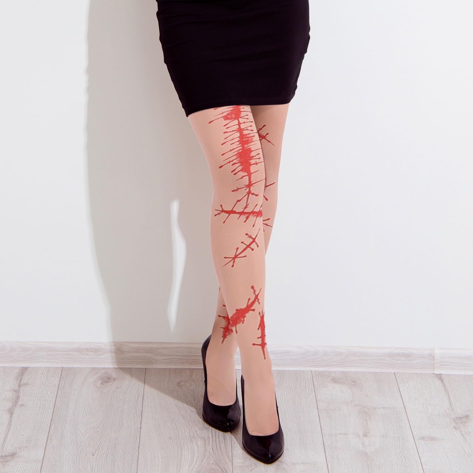 2 Paar Halloween Strumpfhosen | Weiß Mit Blutspritzern | Grusel Kostüm Zubehör | Einheitsgröße