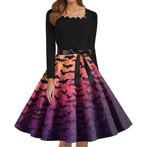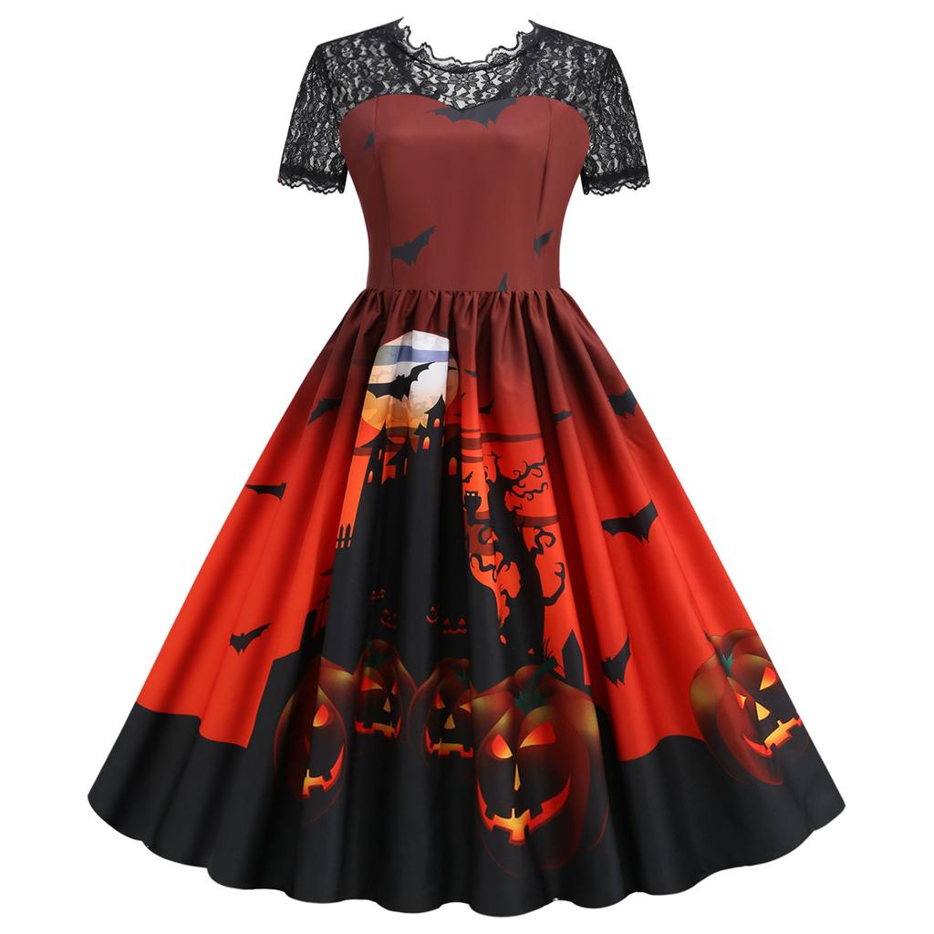 Halloween Swing Kleid Damen - Gothic Partykleid Mit Kürbis Druck